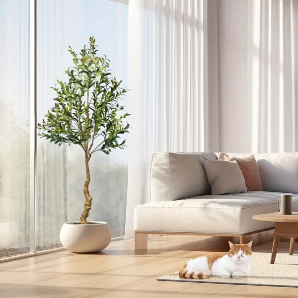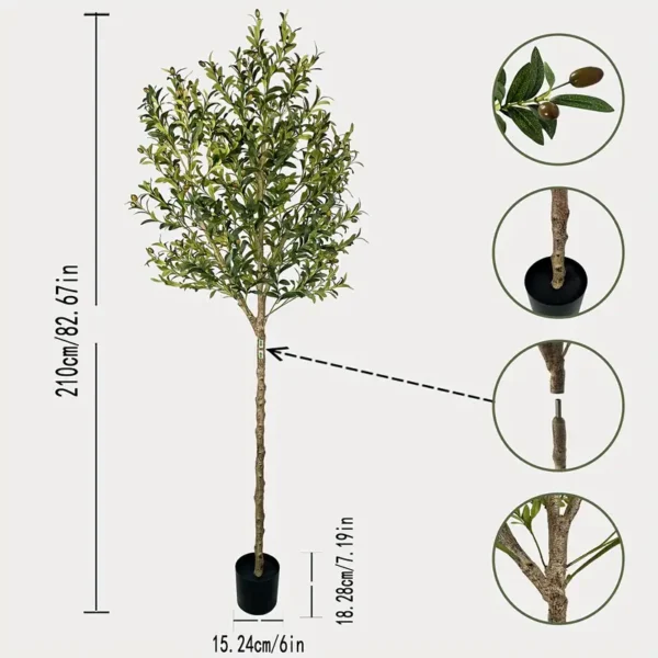 - Design: Ein künstlicher Olivenbaum, der naturgetreu nachgebildet wurde, um einen Hauch von mediterranem Flair zu verleihen.